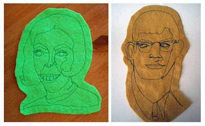 And now I will sing the praises of Wonder Thunder! These AMAZING portraits are from a sewing / printing duo named Wonder Thunder (Meagan Claire Hall and Sasha Barr) that free-motion embroiders onto felt-- in this case, yearbook photos. I love line drawing-- and there is something interesting and cool about using yearbook photos and interpreting them via a sewing machine. Who's that toothy devil in the bottom pic, you ask? It's me in 11th grade. This is a new favorite of mine. I've already ordered a second batch!